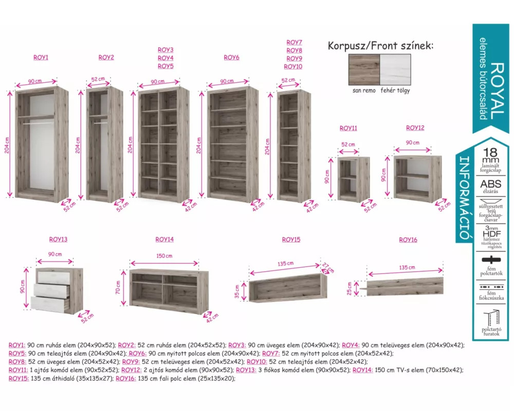 Royal elemes bútorcsalád ROY4-90-es tekeüveges elem